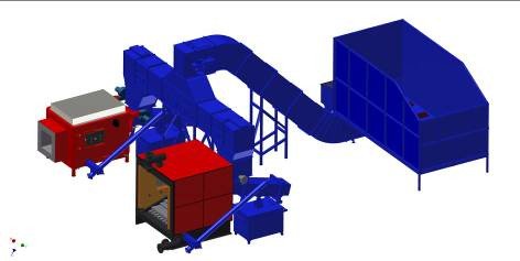 Zestaw spalania hybrydowego (AZSD/PT/1000 i KWH/PT/1000) z redlerem typu RAK, Zakłady Maszynowe Hamech Sp. z o.o., Hajnówka