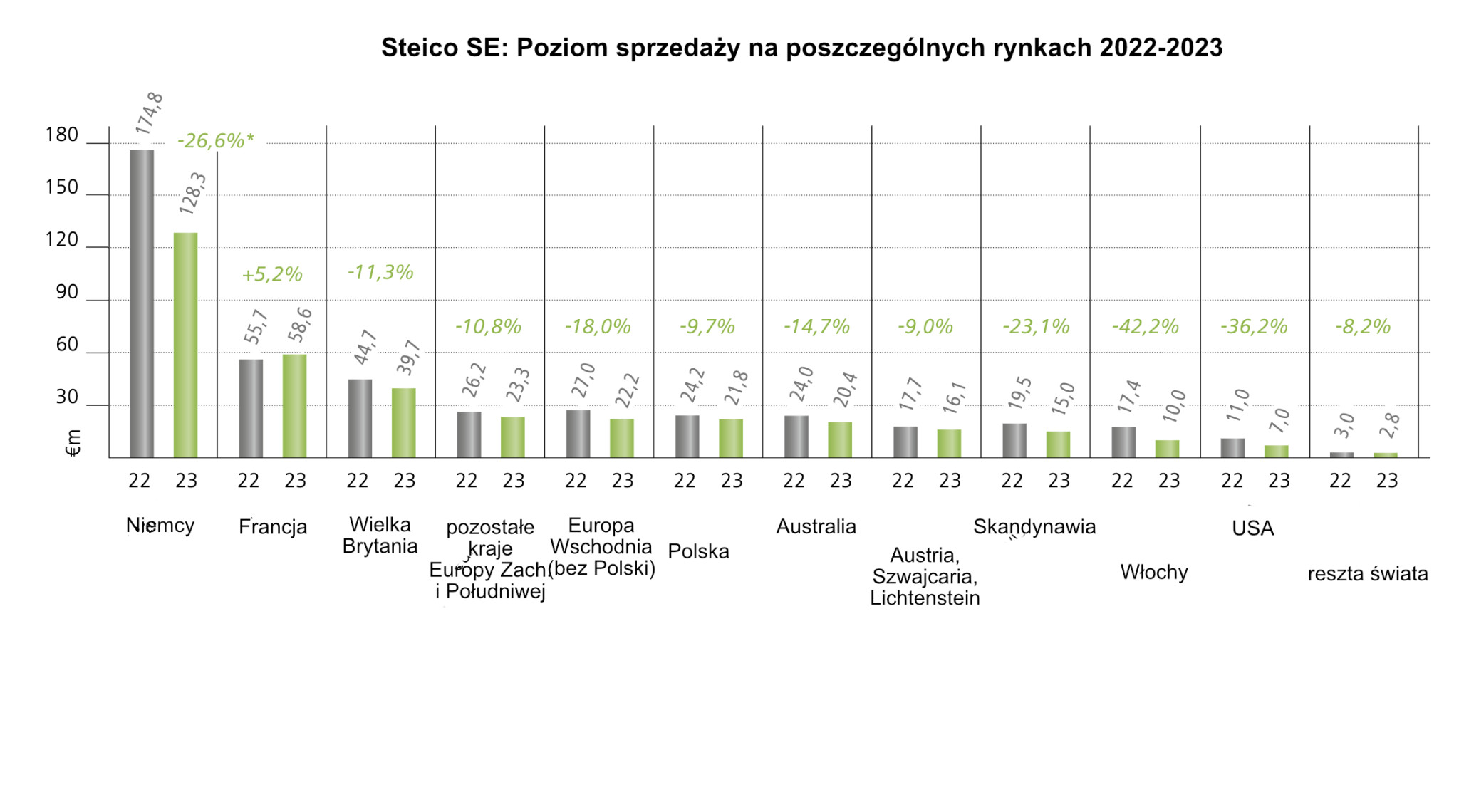 Poziom sprzedaży na poszczególnych rynkach 2022-2023Fot. Steico SE