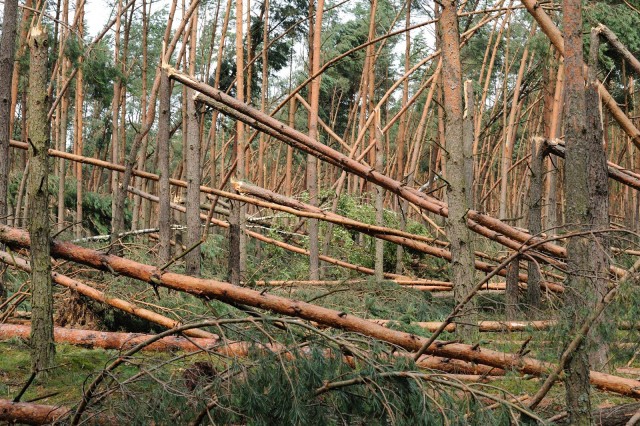Lasy, domy i budynki gospodarcze zniszczyła trąba powietrzna, która przeszła w godzinach popołudniowych 14 lipca przez Bory Tucholskie. Straty wstępnie oszacowano na ok. 550 ha zniszczonego lasu i ok. 80-100 tys. m3 przewróconych drzew.