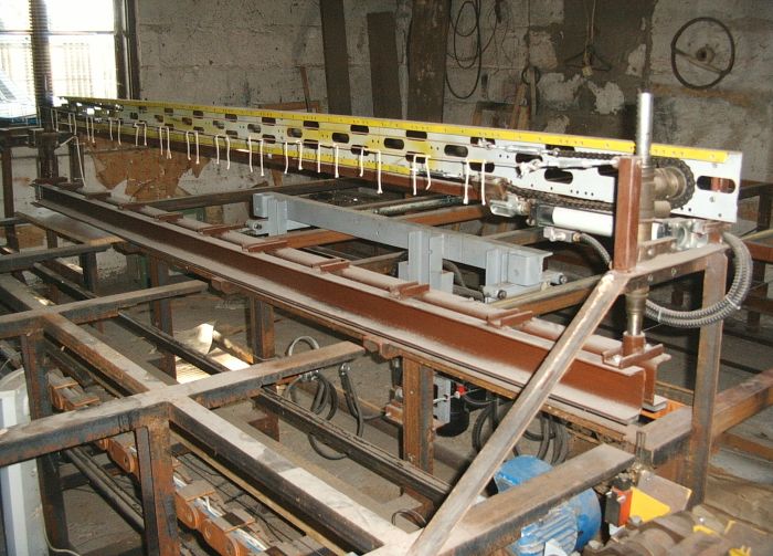Piła panelowa typ SAM. Sterowana komputerem PC .Specjalnie napisany program.Wszystkie funkcje jak w piłach zachodnich.Wymaga sprężonego powietrza.Piła główna 350 mm.Podcinacz 160 mm trapezowy.Podczas cięcia docisk płyty belką.Podczas powrotu pił w położenie wyjściowe piły opuszczone.Rozróżnia dlugość płyty.W chwili obecnej brak blatów oraz zabudowy komputera.Cena 11000 zł \do uzgodnienia\