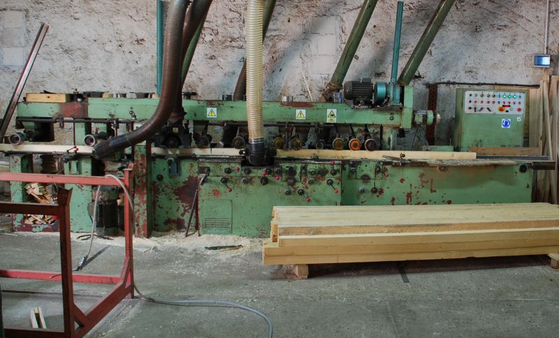 8 wrzecion. Posuw falownikiem, wyświetlacz prędkości posuwu, zamontowane rolki w stole-nienapędzane. Nadaje się do mokrego drewna. Rok produkcji ok. 1980. Pracuje sporadycznie. Cena 11 tyś. netto.