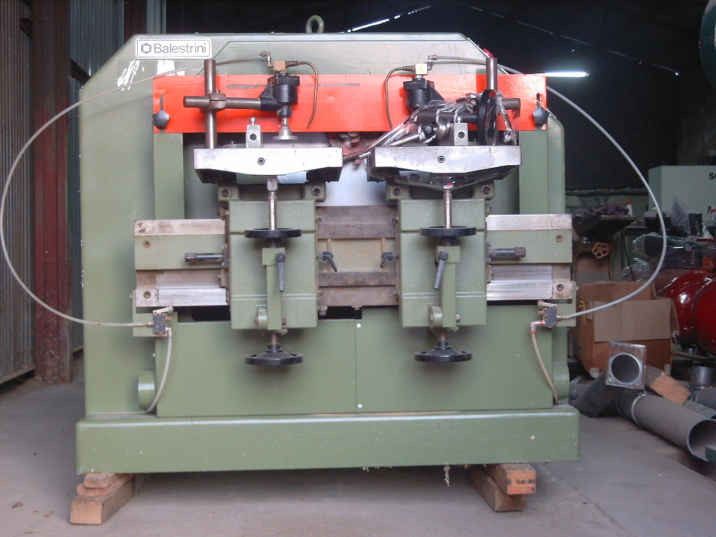 Frezarka obwiedniwa Balestrini dwustolikowa.Niezależne kąty pracy stolików podawczych .Cykl pracy wrzeciona w pionie i poziomie,stoliki uchylne do 30*,dociski pneumatyczne. Stan tech. b.dobry.