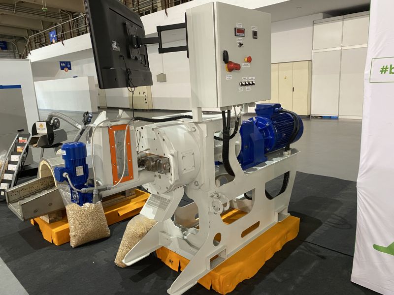 Maszyna wyposażona jest w najlepsze rozwiązanie na świecie jakie wymyślono do tej pory, tj.: w obrotową matrycę pierścieniową ustawioną w pionie. Dzięki temu surowiec naturalnie układa się równomiernie siłą odśrodkową pomiędzy rolką a matrycą, co sprawia, że jest wysoka wydajność przy niskim zużyciu prądu, a równomierna praca wyklucza częste awarie.