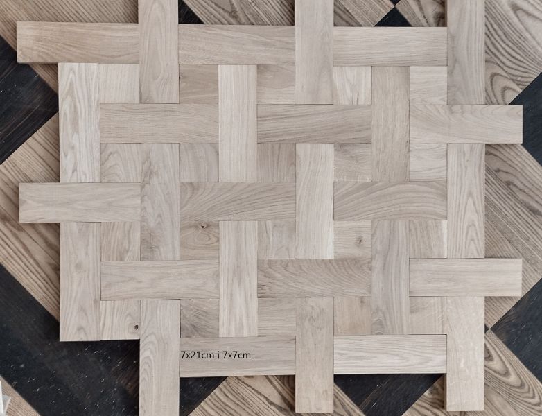 Parkiet dębowy lity, grubość 20mm, wzory lub prosta klepka.Wymiary klepki podane na zdjęciach.