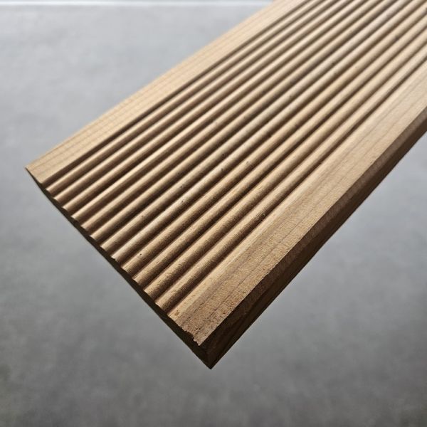 Oferujemy Państwu deskę tarasową z Sosny Skandynawskiej która została poddana termo -modyfikacji przez co zyskała wyjątkową wytrzymałość na warunki atmosferyczne oraz piękny kolor. Deska ma wymiar 26x118 mm i jest dostępna od ręki kilku długościach.