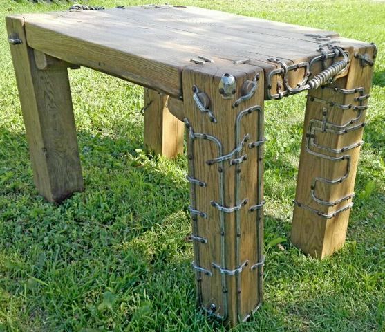 Дубовый столик с декором из металла