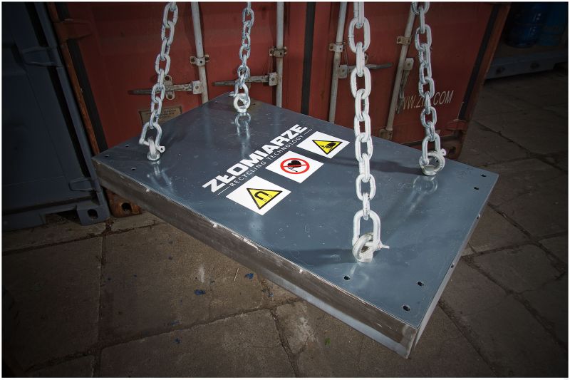 Układ magnetyczny płyty został wykonany z magnesów ferrytowych, zamknięty w obudowie ze stali kwasoodpornej. Płyta służy do wychwytywania niepożądanych elementów stalowych z przenoszonych materiałów sypkich.Płyta magnetyczna podwieszana nad taśmociągiem pozwala na regulację wysokości płyty od taśmy w zależności od transportującego materiału.Płyta wyposażona w ręczną nakładkę szybkoczyszczącą.Płyta znajdzie zastosowanie w różnych dziedzinach przemysłu :