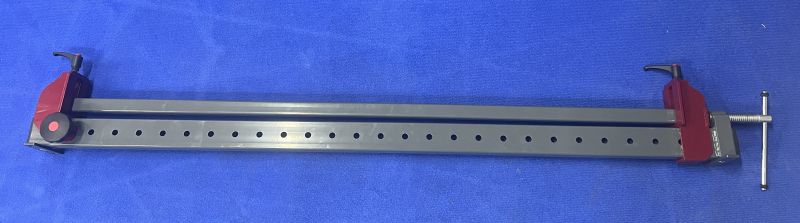 - Ścisk wyposażony jest w śrubę trapezową zapewniającą docisk max 1000 kg oraz wymienną metalową listwę wyrównującą płaszczyznę klejoną. Listwę można łatwo zdemontować w celu klejenia grubszych elementów.
