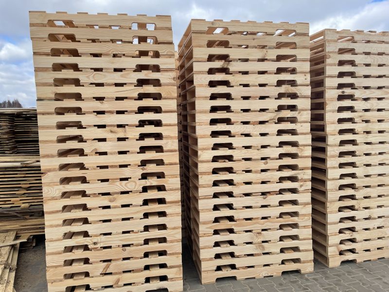 Palety z drewna iglastego, suszone komorowo z certyfikatem IPPC oraz PEFC.