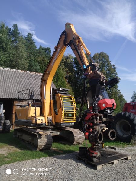Harwester gąsienicowy na bazie koparki Hyunday 140ic.System operacyjny Motomit, głowica SP Maskiner 65 po kapitalnym remoncie.