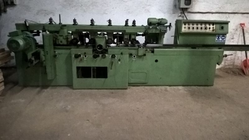 Strugarka również do drewna mokrego, rolki pod kołem napędu posuwu. Układ głowic: dół, prawa, lewa, prawa, góra, uniwersalna ( kąt, góra, dół, piła). Napęd posuwu wał przegubowy. Długość stołu podawczego 250cm., szerokość robocza 200 mm, wysokość robocza 140 mm. średnica wrzecion 40 mm. Rolki w stole pod kołami posuwu. Strugarka podłączona, można wypróbować.