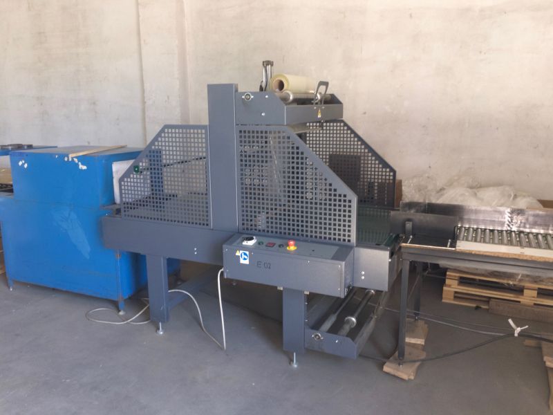Maszyna do automatycznego pakowania w folię termokurczliwą, przed wprowadzeniem do tunelu grzewczego.- maszyna kupiona była jako nowa