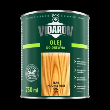 Olej do drewna Vidaron zawiera naturalne składniki, które doskonale pielęgnują i skutecznie chronią drewno. Ma doskonałe właściwości ochronno-dekoracyjne, trwale zaezpiecza drewno przed niekorzystnymi warunkami atmosferycznymi, ogranicza pękanie i chroni przed nadmiernym brudzeniem powierzchni. Olej do drewna Vidaron pozwala uzyskać niepowtarzalny efekt – półmatowe wykończenie, które doskonale eksponuje naturalne słoje.Wydajność produktu: